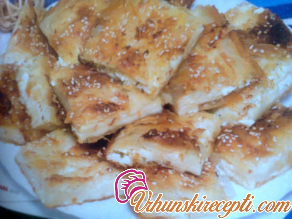 Redjati po 3 kore-prve 2 premazivati sa po 3 kasike fila, a trecu samo sa 1 kasikom fila, pa je posuti filom-sir i jaja, urolati i redjati u podmazan pleh.